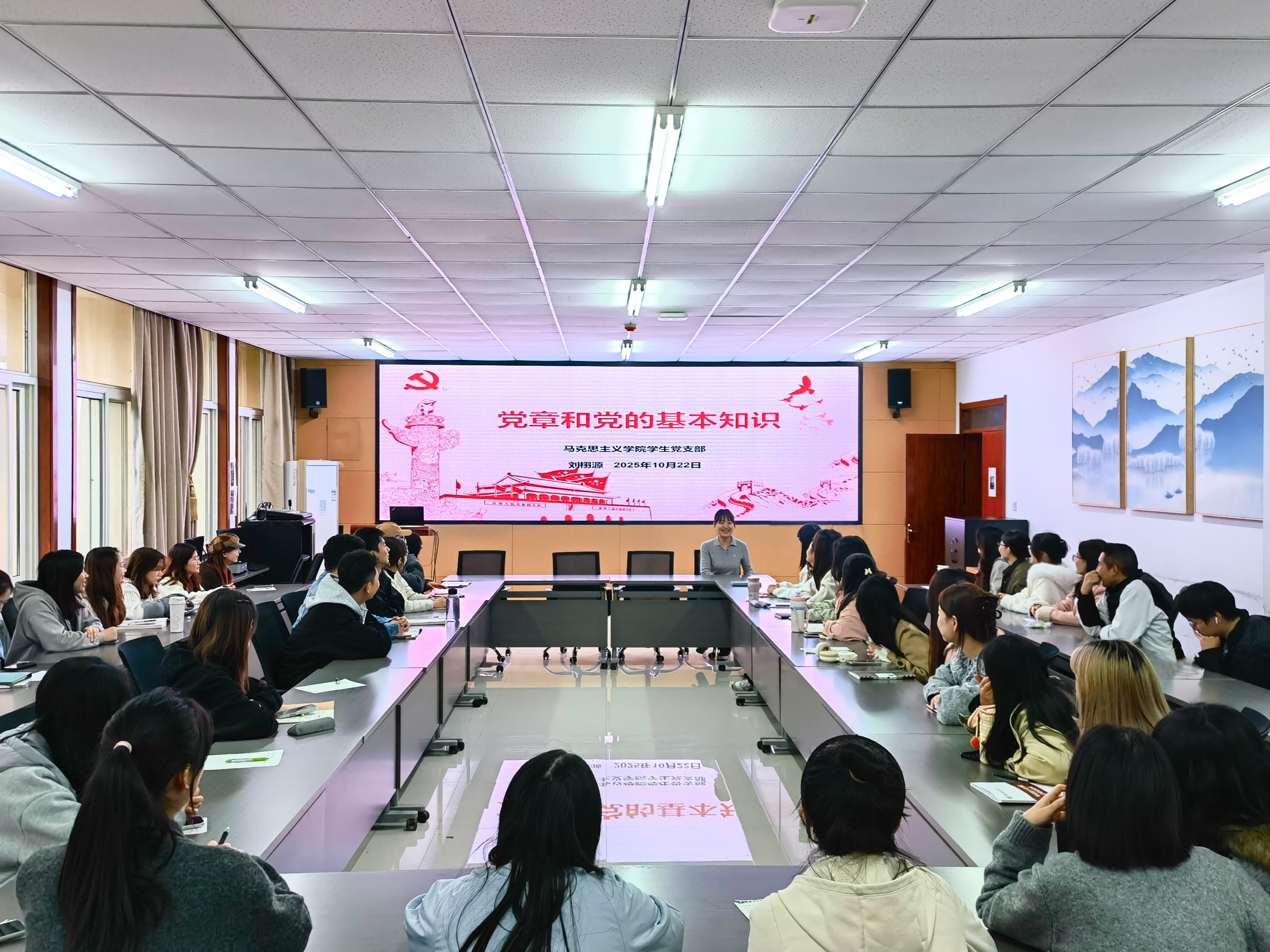 会上,刘栩源以党的二十大党章修订要点为切入点,带领大家梳理党章新增内容,聚焦党的基本知识,围绕党的性质、宗旨、指导思想等核心内容展开解读。她强调,党章是党的根本大法、党的基本知识是入党必修课,二者均需学深悟透、笃行践行。最后,刘栩源鼓励大家要以党员标准自我鞭策,力争早日成为一名合格的中国共产党员。