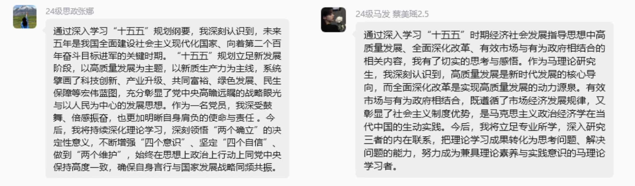 第一党小组在“一站式”学生社区开展线下集中学习,通过原文领学与集中研讨,聚焦“十五五”规划的关键部署。党员结合马克思主义理论专业实际,探讨如何将理论研究和思政宣讲对接国家战略需求,进一步明确了学习研究方向与个人行动路径。