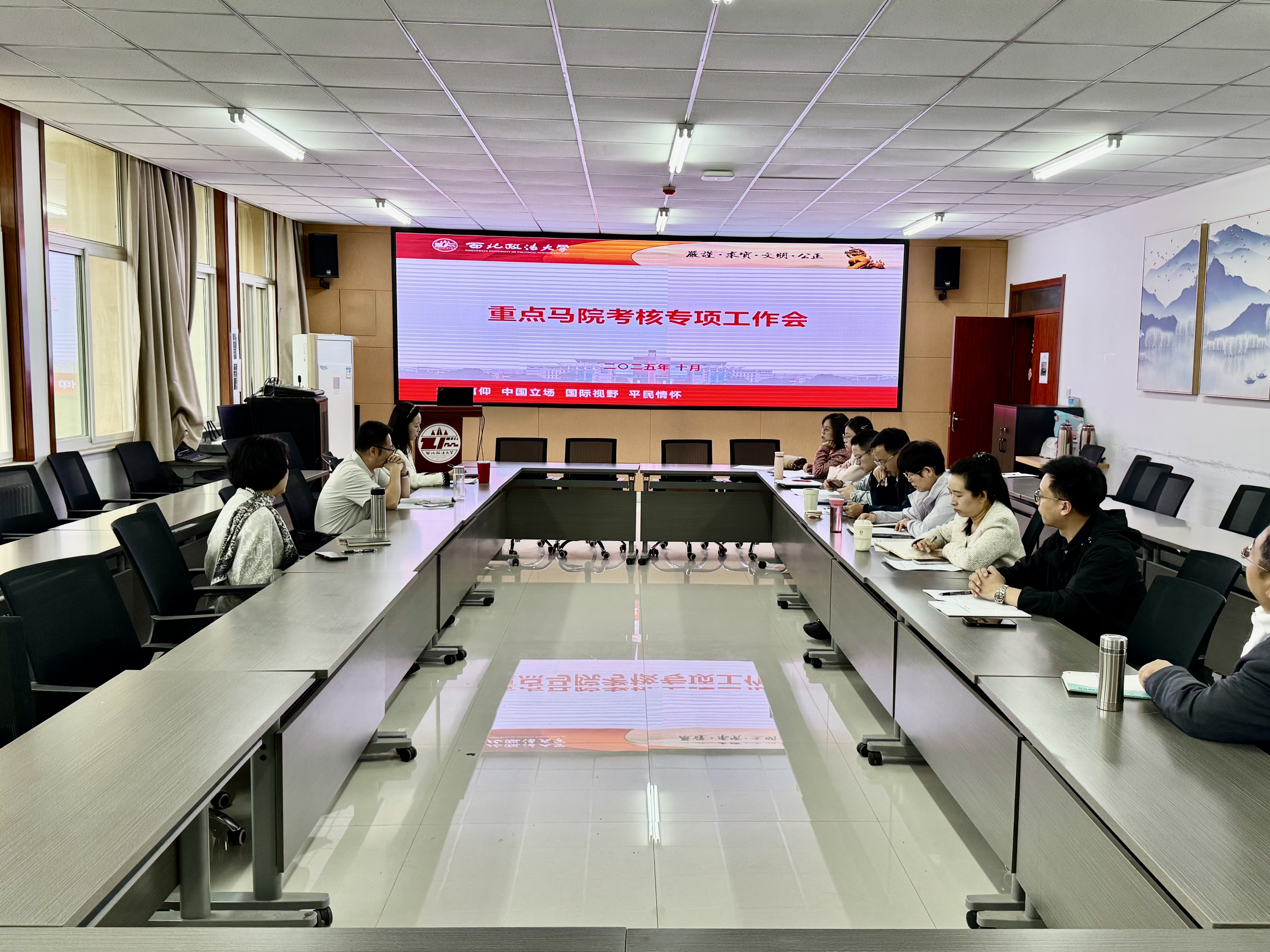 10月9日上午,皇冠现金网 于诚意楼五楼会议室召开省重点马院建设专项工作会。皇冠现金网 党委书记刘驰及工作组全体成员、教学督导、各教研室主任等参加本次会议,会议由副院长鲁洋主持。