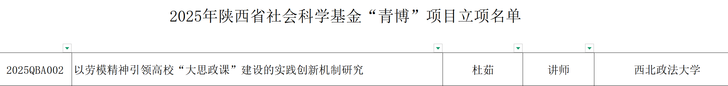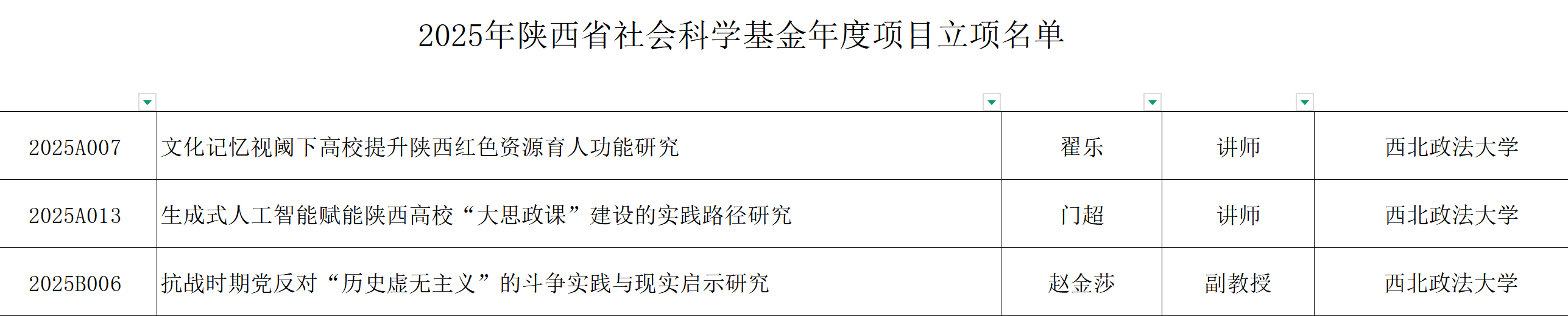 近日,2025年陕西省社会科学基金年度项目和“青博”项目立项名单公布。皇冠现金网 赵金莎副教授主持的《抗战时期党反对“历史虚无主义”的斗争实践与现实启示研究》、门超讲师主持的《生成式人工智能赋能陕西高校“大思政课”建设的实践路径研究》、翟乐讲师主持的《文化记忆视阈下高校提升陕西红色资源育人功能研究》、杜茹讲师主持的《以劳模精神引领高校“大思政课”建设的实践创新机制研究》获批立项。