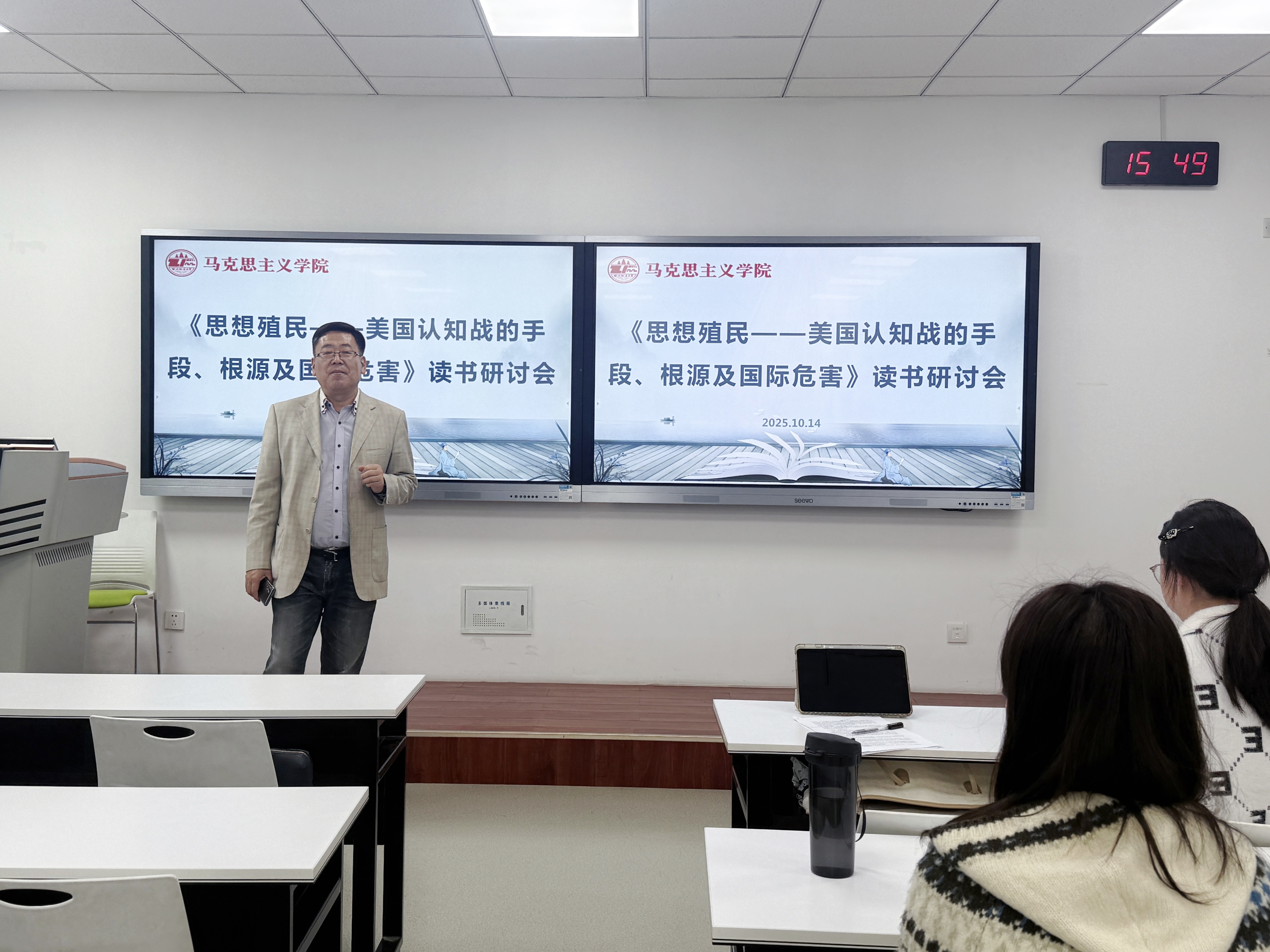 马克思主义中国化研究专业于诚意楼三楼举办《思想殖民——美国认知战的手段、根源及国际危害》读书研讨会。会议由魏奇教授主持,2024级马克思主义中国化研究专业研究生参加。