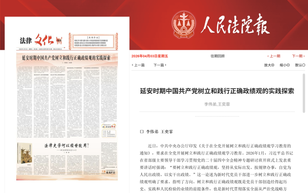 【人民法院报】李伟弟 王奕霏:延安时期中国共产党树立和践行正确政绩观的实践探索://www.rmfyb.com/content/202604/03/article_1018895_1391733645_6552445.html